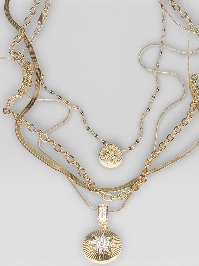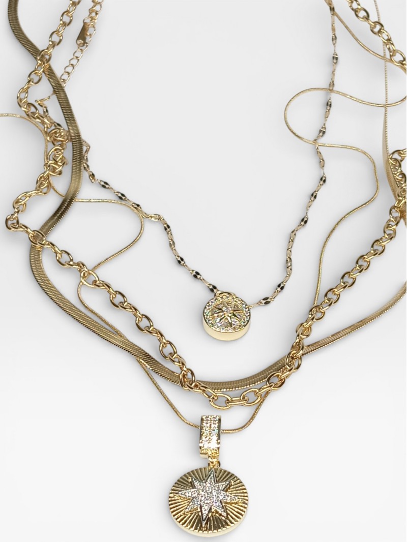 Şıklığı ve modern tasarımı bir araya getiren bu özel çelik kolye seti, 4 ayrı kolyeden oluşmaktadır. Her kolye tek tek kullanılabildiği gibi, birlikte kullanıldığında katmanlı (layer) görünüm sunarak stilinize güçlü bir dokunuş katar.