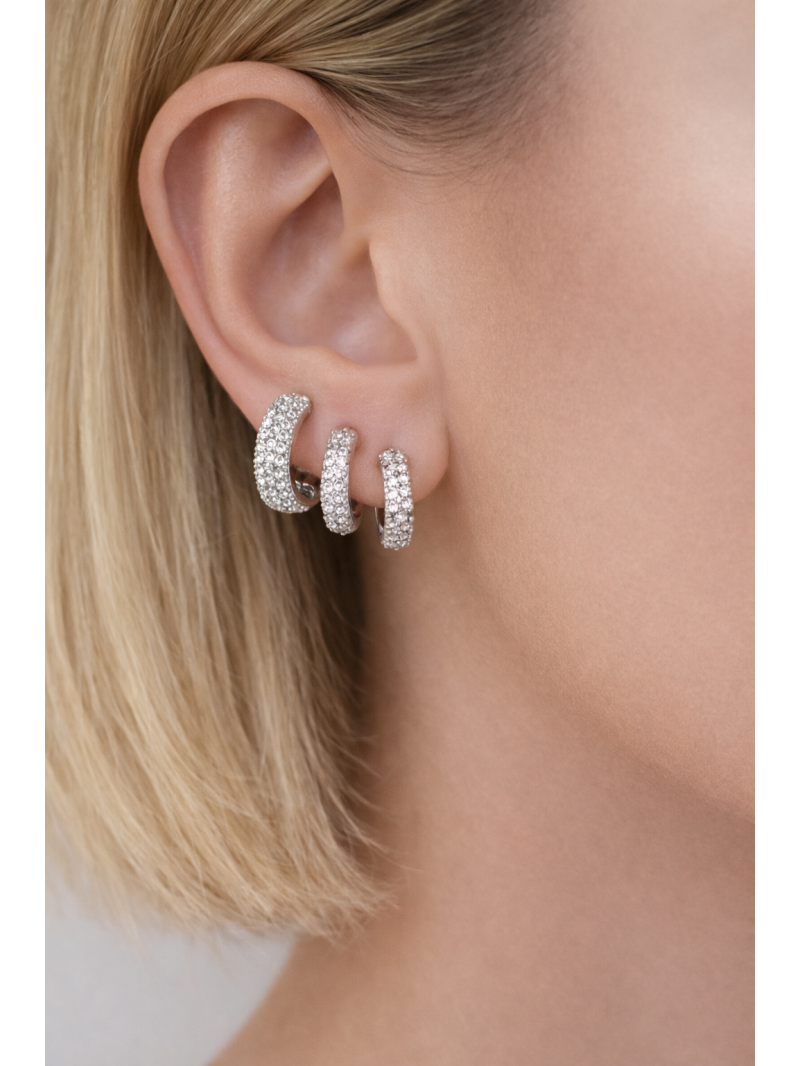 Zarif tasarımı ve göz alıcı zirkon taş detaylarıyla öne çıkan çelik halka küpe, günlük kullanım ve özel günler için şık bir tamamlayıcıdır. Parlak silver renk kaplaması sayesinde modern ve zamansız bir görünüm sunar.