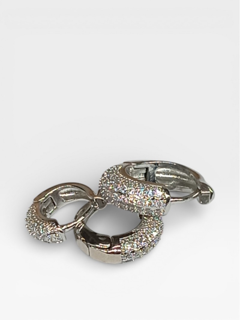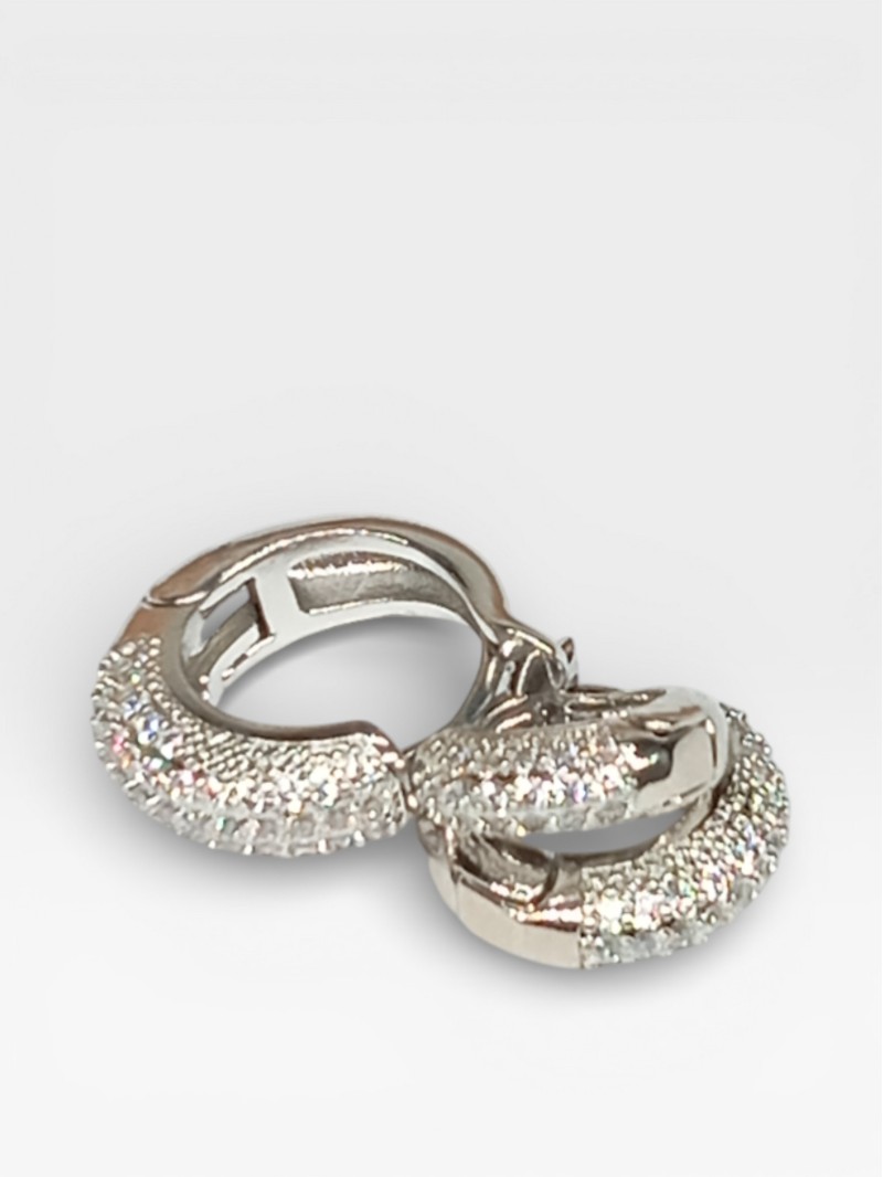 Çelik Küpe – Parlak Zirkon Taşlı Halka Küpe (Silver Renk)